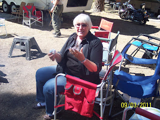 Sunday afternoon, we roasted hotdogs, how good they tasted then we, Beverly and myself toasted a couple of those really big marshmellows and they were good but boy were they messy! Sitting on the left is myself, then Arlo and Beverly. Jim is taking the picture.